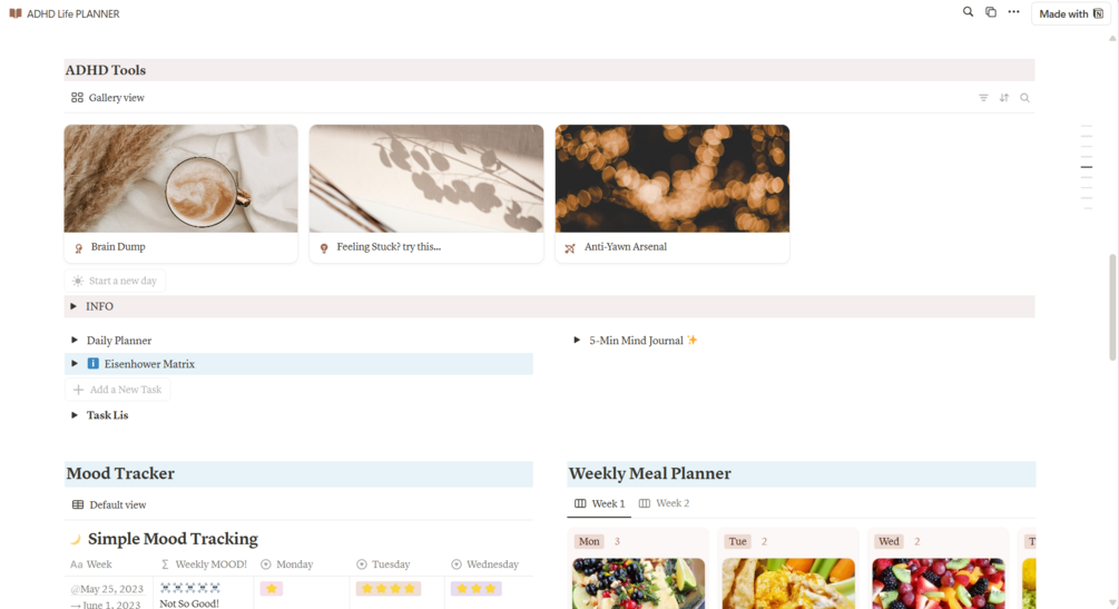 - Bonus: Printable ADHD Planner – As a special bonus, you'll also get a printable ADHD Planner, designed to complement the Notion planner for those moments when you need something offline or prefer pen-to-paper planning!